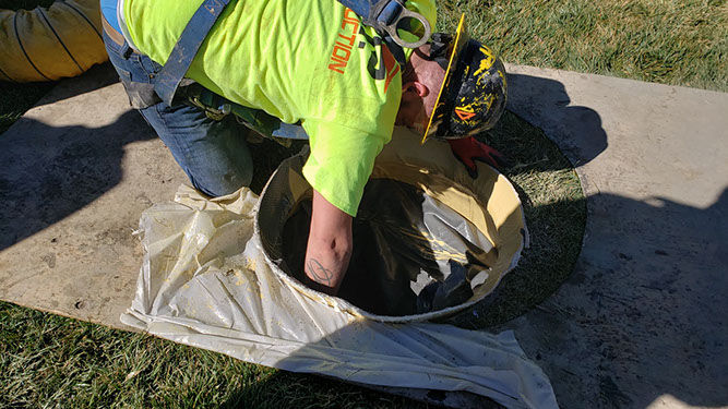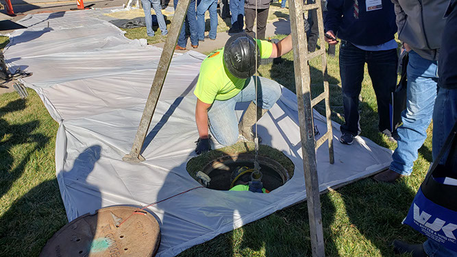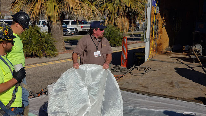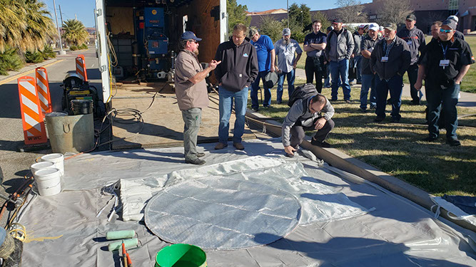 We just completed a demo Triplex liner installation in a manhole outside the convention center in St George, Utah as part of the Rural Water of Utah Association annual conference. It qualified as continuing education for the attendees. Approximately 150 wastewater officials and engineers from across Utah attended.